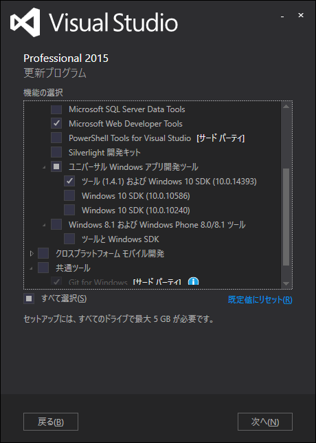 Windows 10 SDK 10.0.14393.0 を必ず選択してインストール(package-nightly.cmdでWindows 10 SDK 10.0.14393.0のSetupAPI.Libを使用)