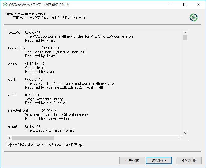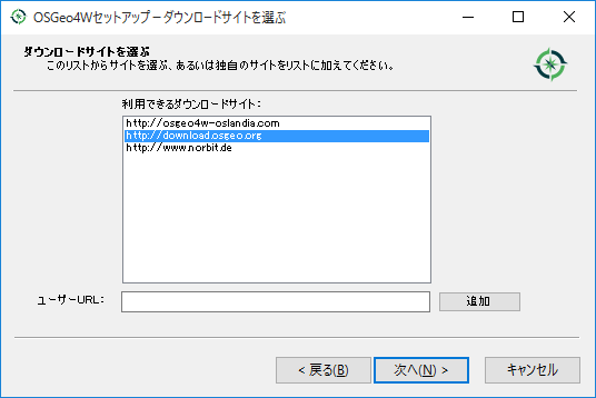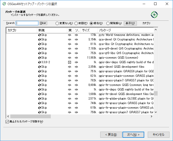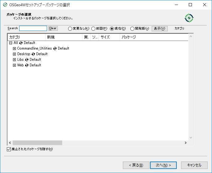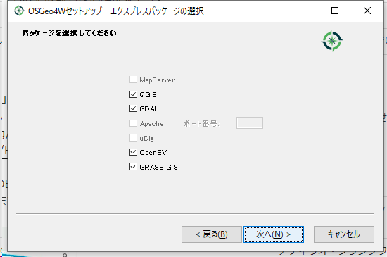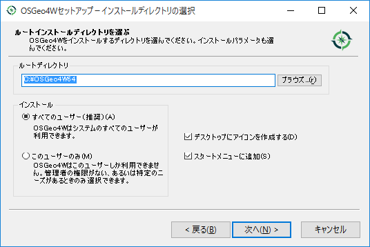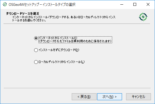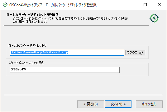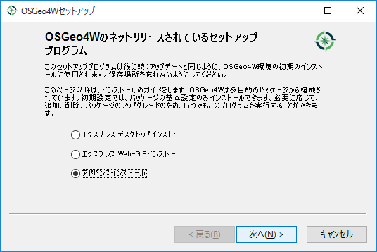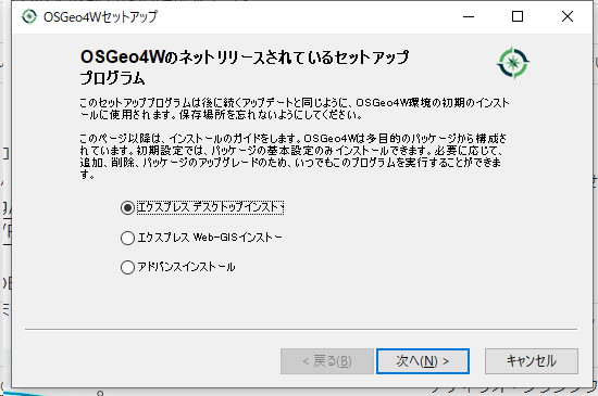 OSGEO4W版のインストーラーを起動しC:\OSGEO4Wにインストール