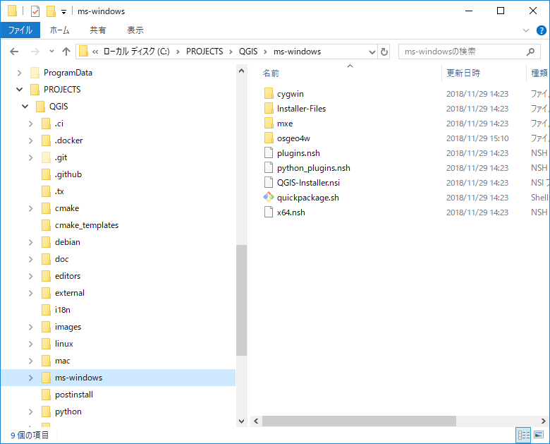 C:\PROJECTS\QGIS\ms-windows\osgeo4w\configonly.batは内部でpackage-nightly.cmdを呼んでいる。