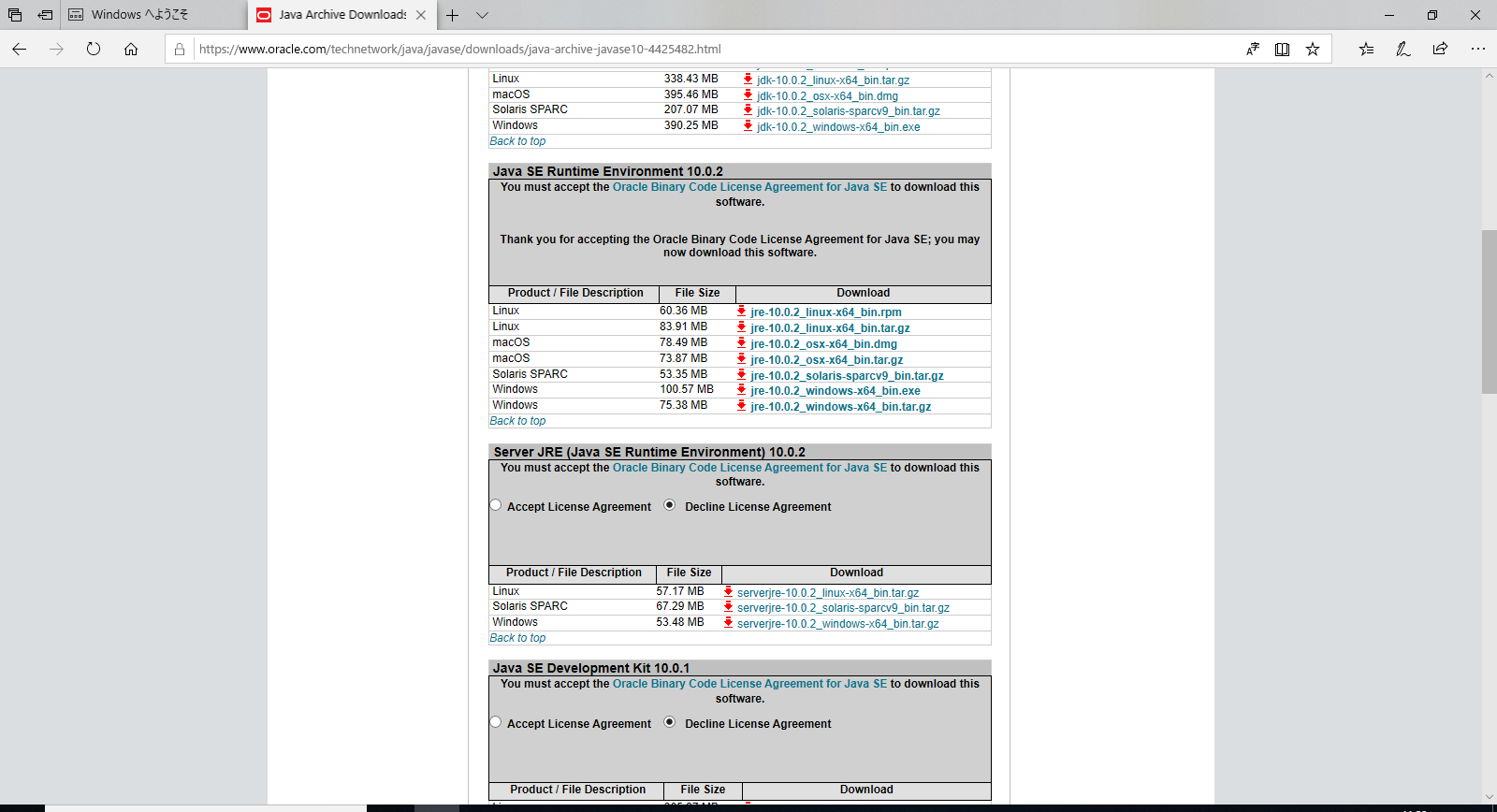 Eclipseのサイトより「Oracle JRE 10」をダウンロード