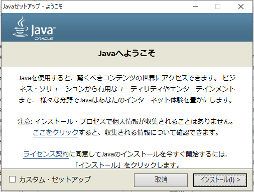 ダウンロードした「jre-10.0.2_windows-x64_bin」を実行