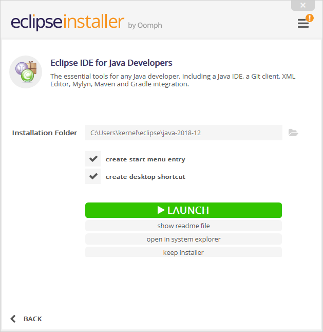 eclipse インストーラーが起動されたら「eclipse IDE for java developers」を選択