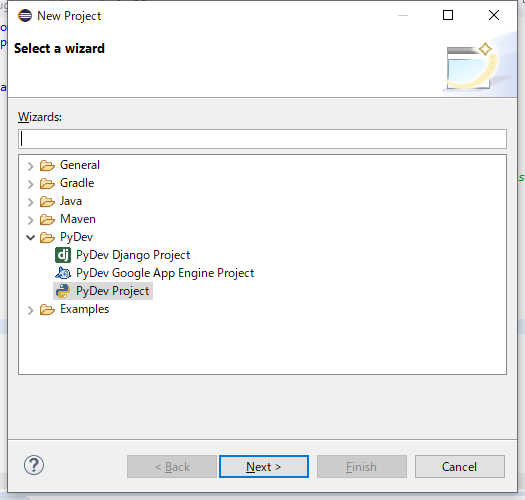 Eclipseの「New」メニューから-「Project」-「PyDev Project」を選択