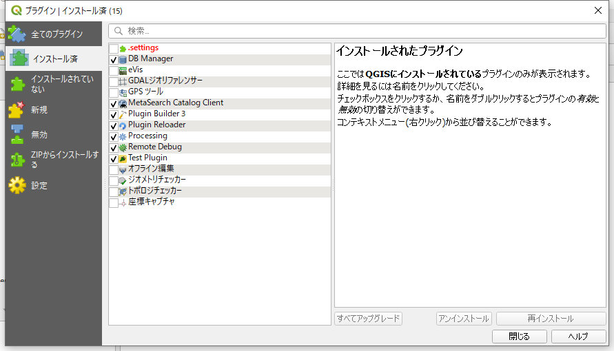 確認のためにQGISのPlugin Builder3でプラグインを作成して「C:\Users\ユーザー名\AppData\Roaming\QGIS\QGIS3\profiles\default\python\plugins\」に配置