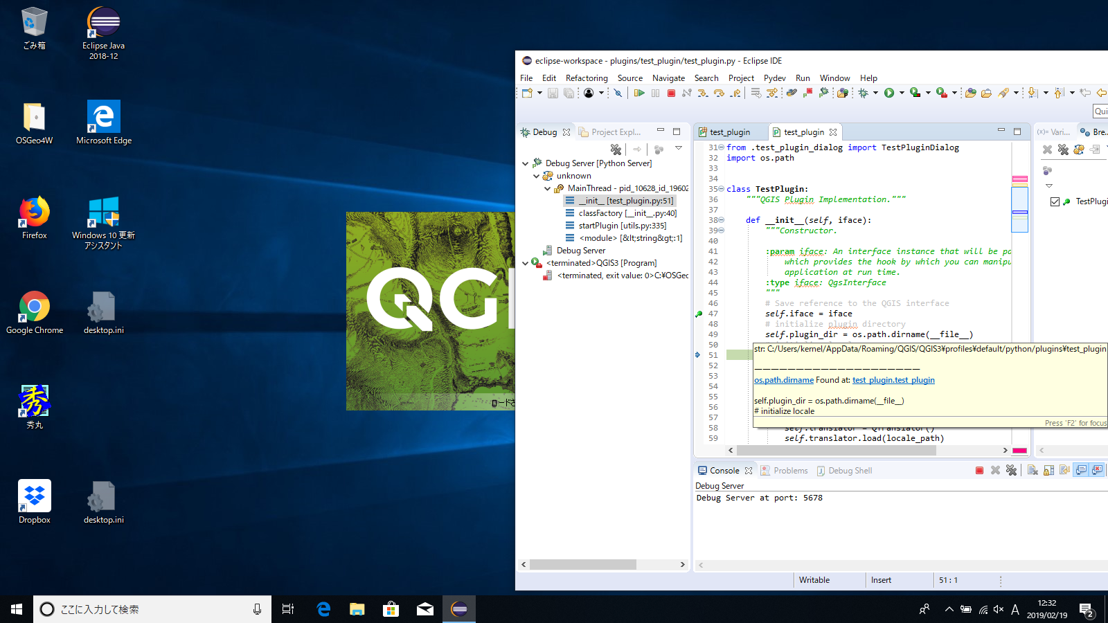 QGISが使用するPython.exeを指定するためにQGISを起動してPYTHONHOMEの値を確認