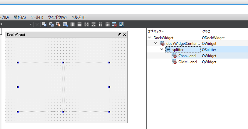 2つのQWidgetを選択して「ツールバー」の「水平にスプリッタの中に並べる」を選択