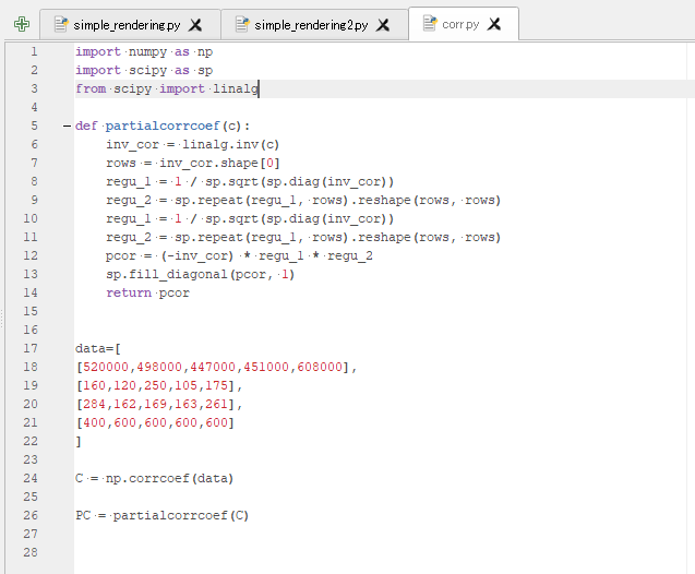 相関行列、偏相関行列の計算(答え合わせ)は通常Rを使うが、今回はPythonでやってみる。