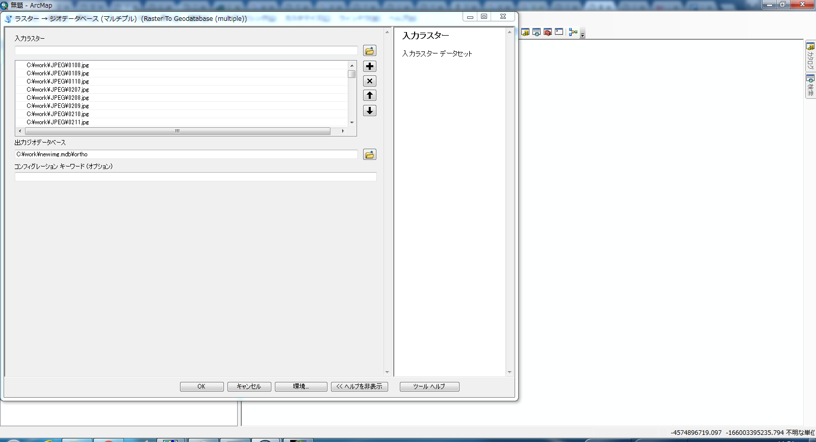 ArcMap上で複数のラスタデータを同一のレイヤとして扱うためにパーソナルジオデータベースにラスタカタログを作成。