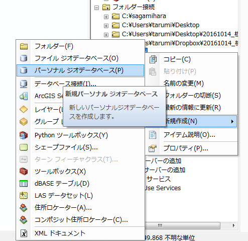 ArcMap10.4のカタログ上でパーソナルジオデータベース「newimg.mdb」を新規作成