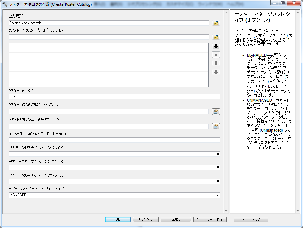パーソナルジオデータベースにラスタカタログを作成