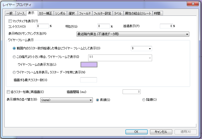 ちなみにArcMap上ではレイヤプロパティで設定