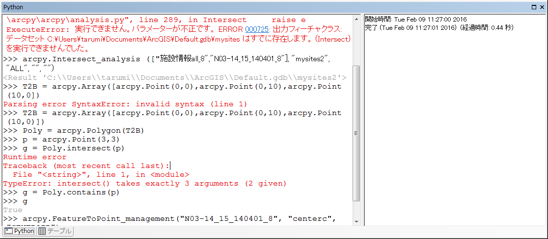 >>> arcpy.AddJoin_management( “tochi_poly”, “LINKKEY”, “c:\work\work\Mst.mdb\Mst土地”, “LINKKEY”)