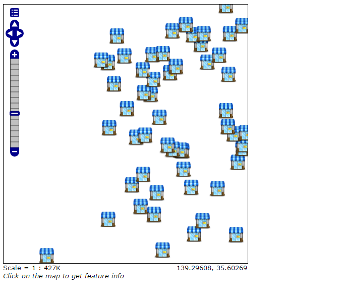 OpenLayersに表示したGeoServerのPOINT(シンボル)のFeatureInfo(情報)をクリックして照会(WMSGetFeatureInfoです)