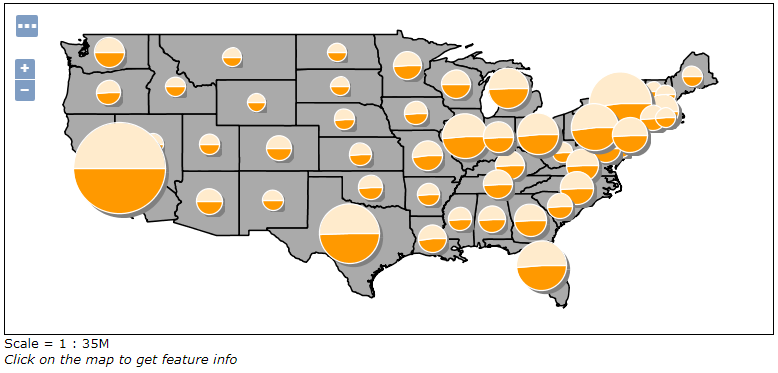 GeoServerを再起動してレイヤ「USA Population」のスタイルをGeoServer Trainingに従って作成したスタイルに変更する。