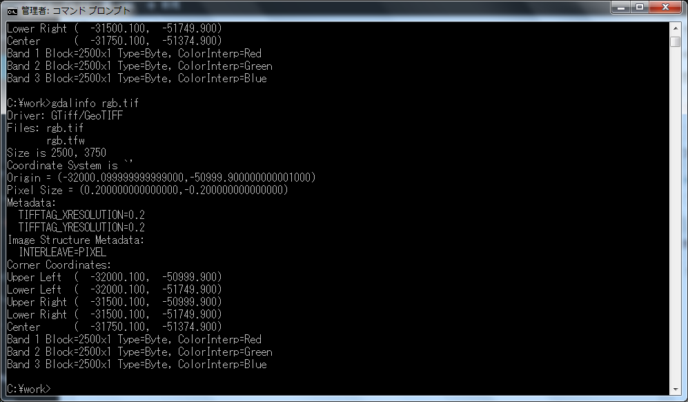 GeoTIFFのExtentはGDALのユーティリティgdalinfoで表示可能。