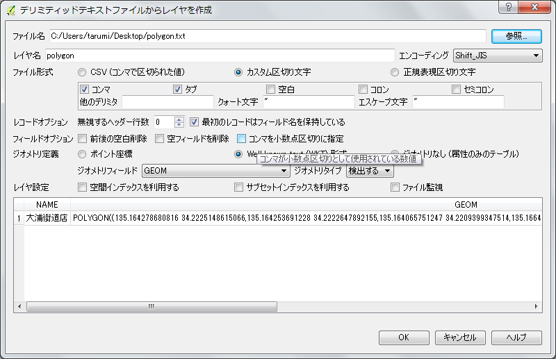 WellknownText形式に変換してQGISで開くのがとっても簡単!