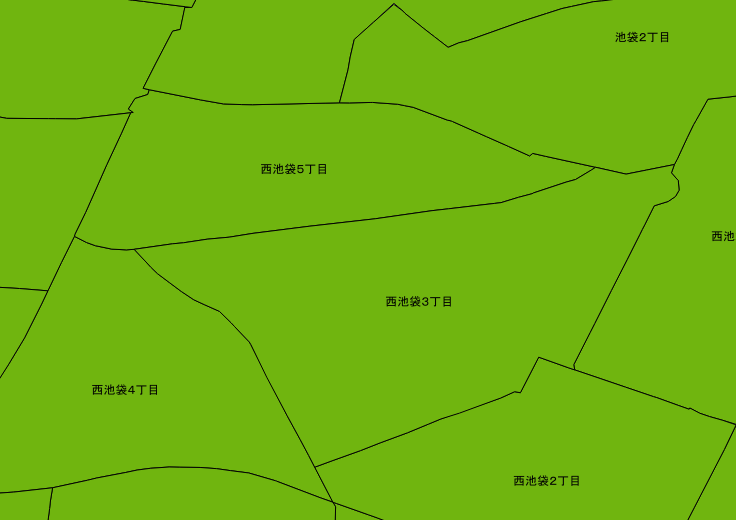 西池袋3丁目の場合は「西池袋」が「町」、「3丁目」が「丁目」である。