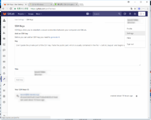 サイドばーよりSSHきーを選択してSSHキーを入力するページを表示