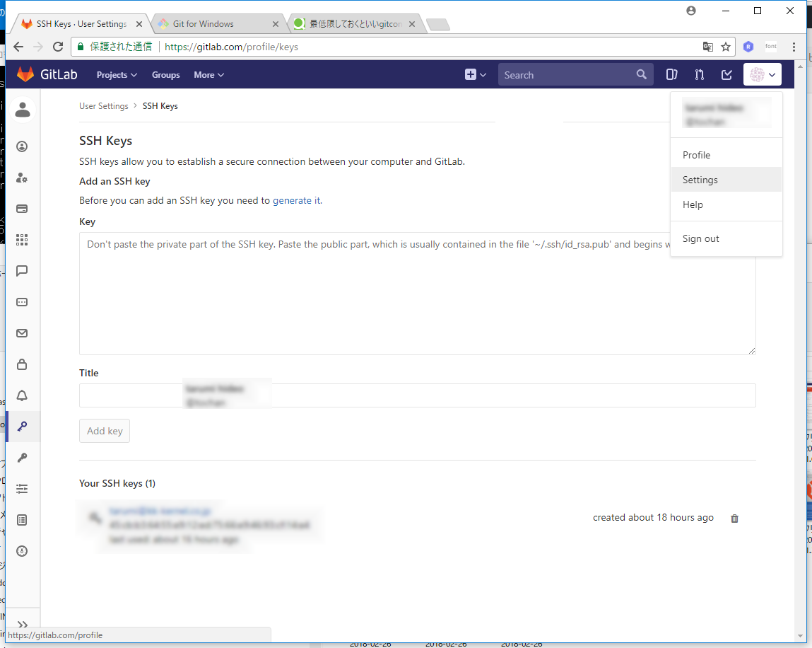 今回は既にGitLabのリポジトリへの接続環境が作成されているPC上にGitHubのリポジトリへの接続環境を構築する。