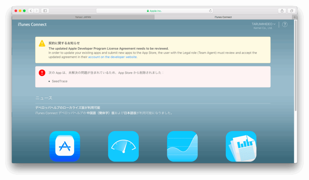 最近、iTunes Connectを開いていなかったので久しぶりに開くと