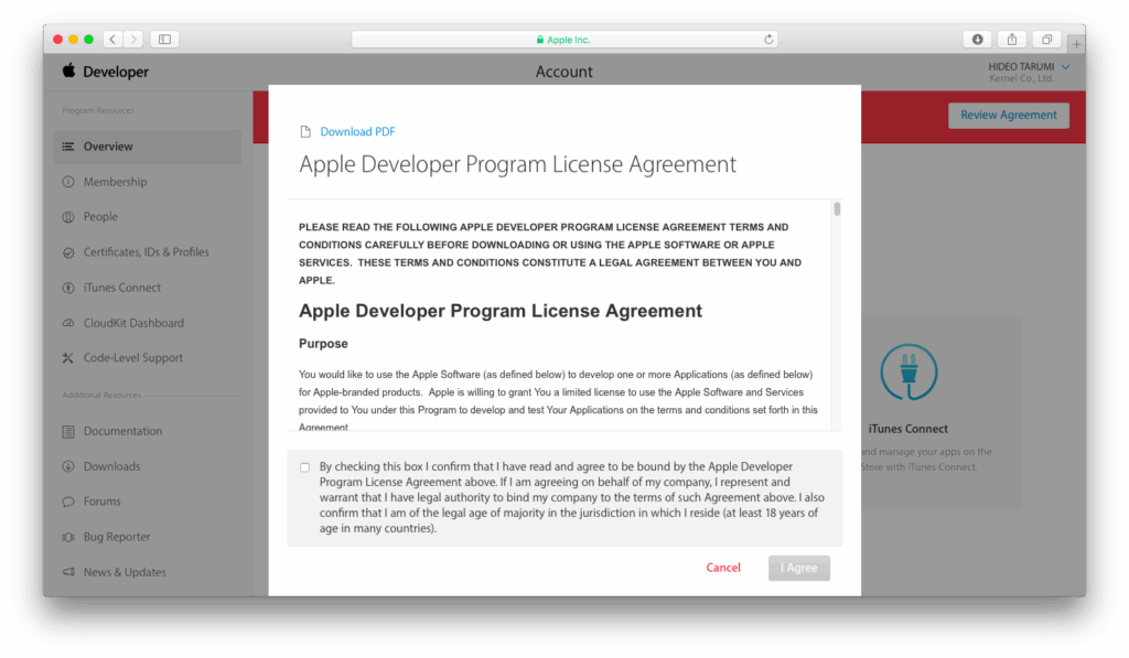 The updated Apple Developer Program License Agreement needs to be reviewed.
