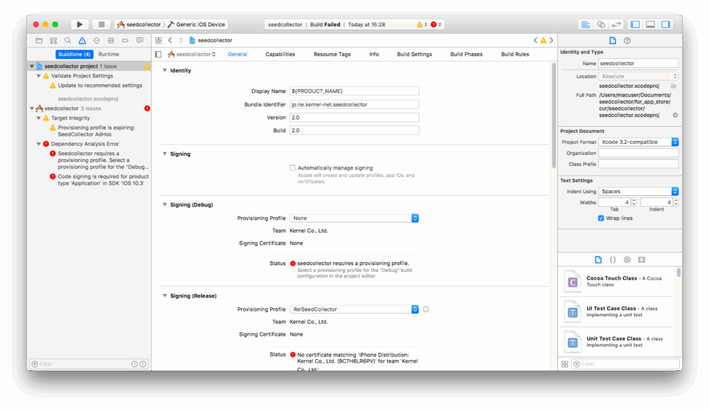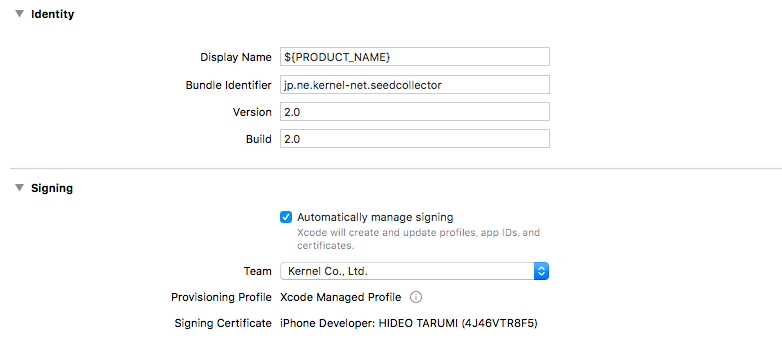 最近はXcodeが勝手に証明書関連を設定してくれるが、なぜかうまくいかなかったので手動で設定する