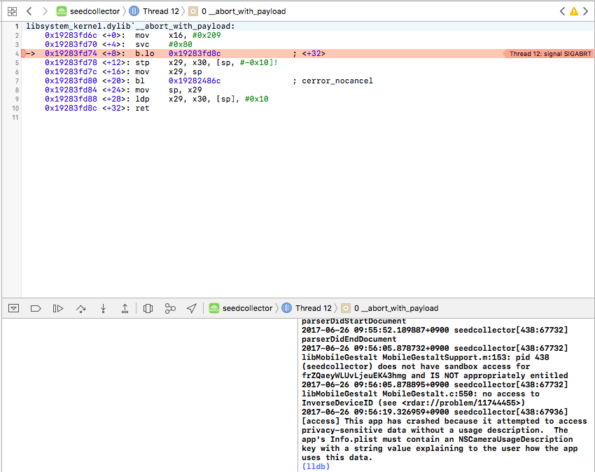 ※iOS9でアプリが起動直後にクラッシュする場合の回避方法を参考とする
