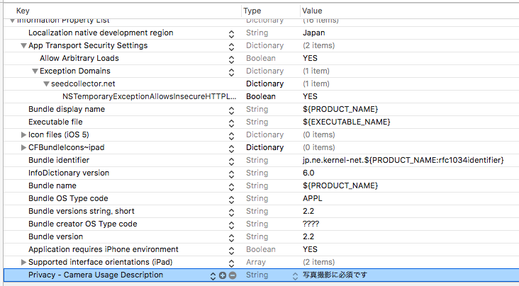 info.plistのキー「App Transport Security Settings」に「Exception Domains」以下を追加
