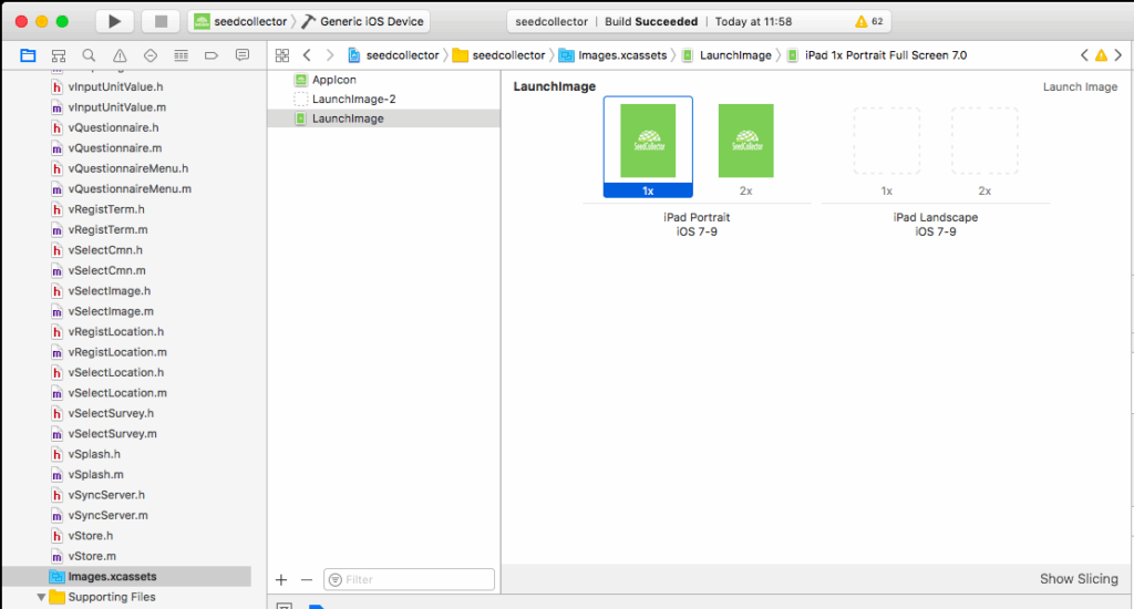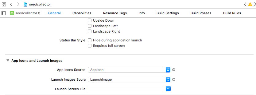 images.xcassetsを選択すると確かにLunchImageが設定されていない。(LunchImage-2はよく分からない)