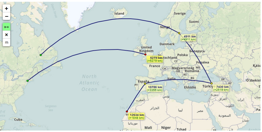 測地線に沿った距離計測かも