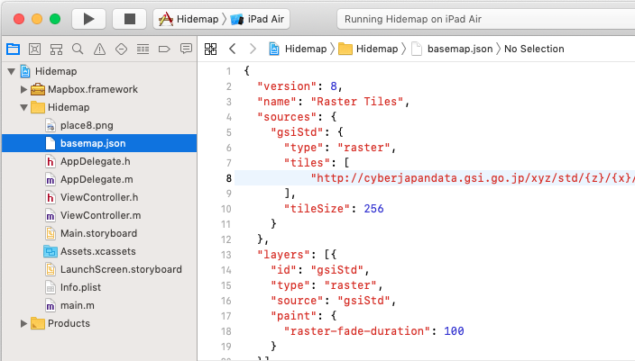 このファイルの内容はmapbox-gl-native for ios で地理院地図を表示してみるのそのまんまです