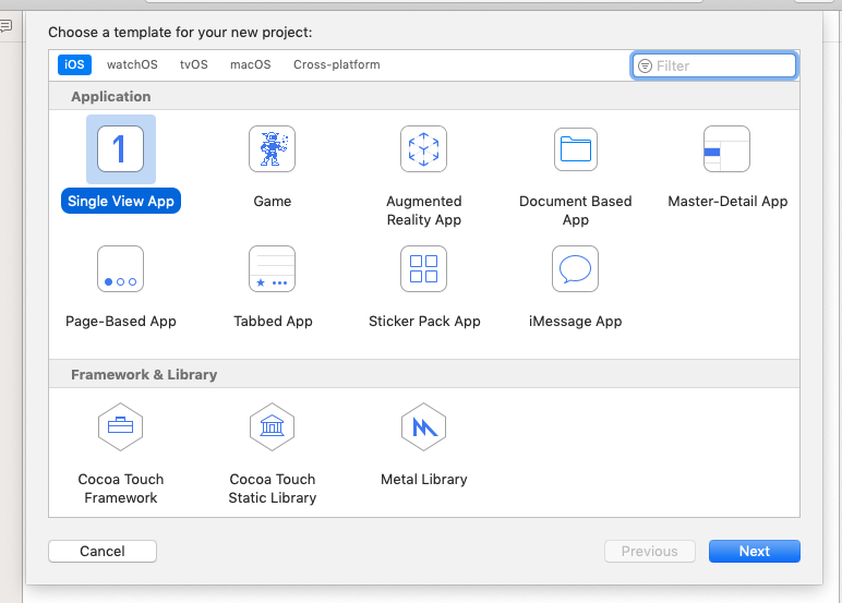 XCODEを起動してSingle View Appのプロジェクトを作成