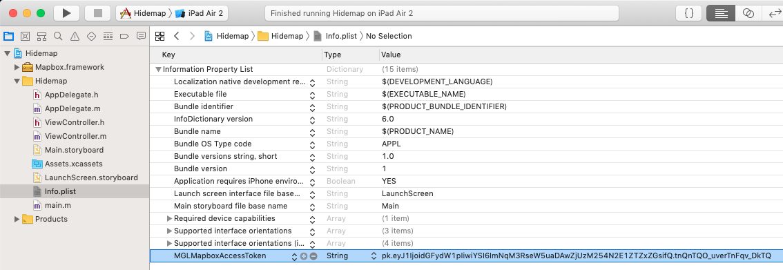 info.listにMGLMapboxAccessTokenを追加しキーを入力