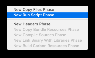 TARGETSのBuild Phases画面を開き、+(追加)ボタンを押す