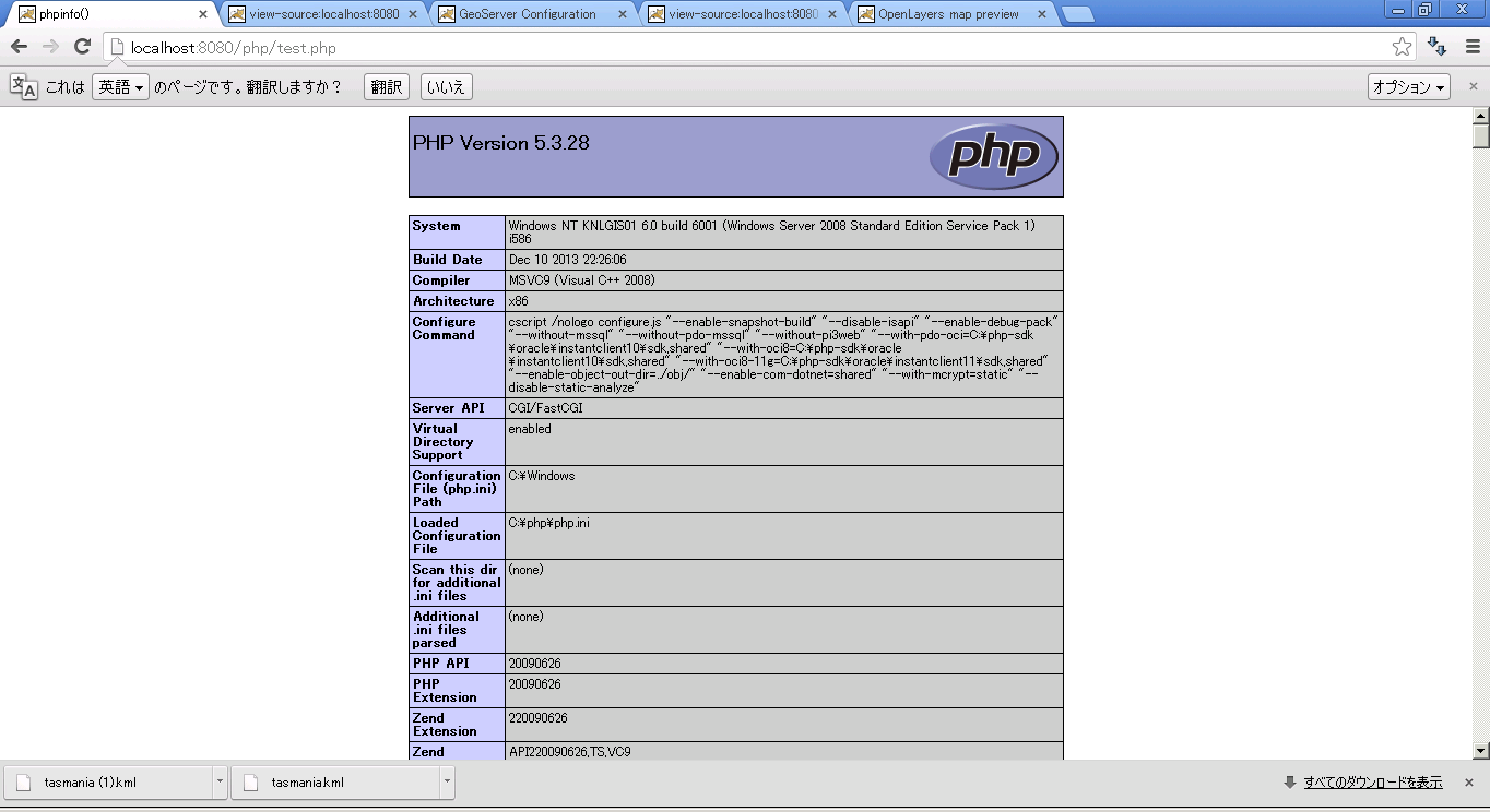 php-5.4.33-nts-Win32-VC9-x86.zipをC:\phpに展開。