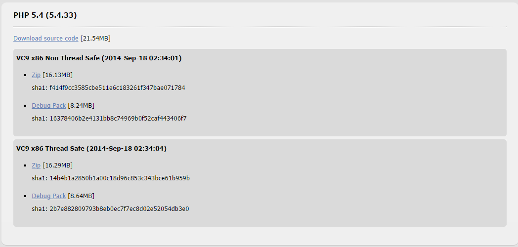 PHP5.4.31のソース等が入手できなかったため5.4.33のそれをダウンロード