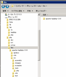 phpフォルダの下にlibsフォルダを作成してダウンロードしたlog4phpを展開