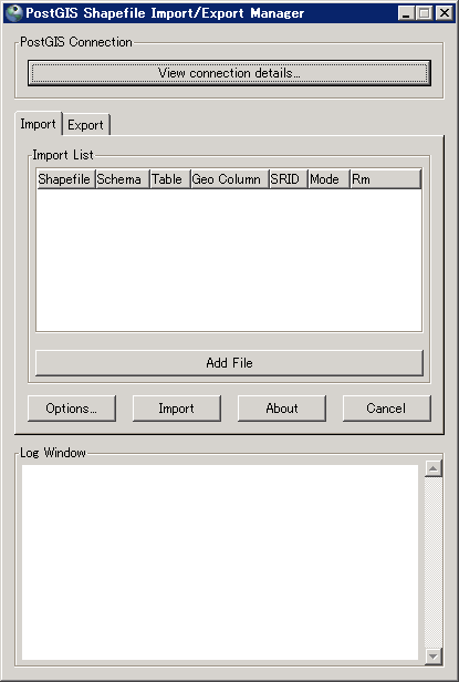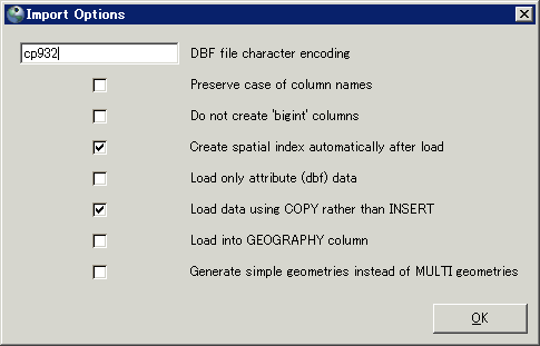 PostGISに付属するPostGIS 2.0 Shapefile and DBF Loader Exporterを使用する