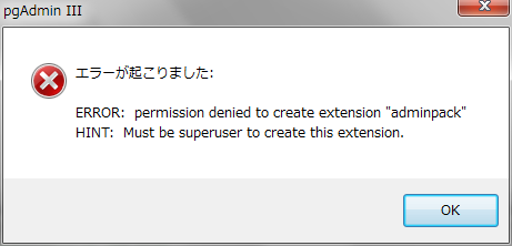 adminpackにより実装された機能はスーパーユーザのみが実行可能です。