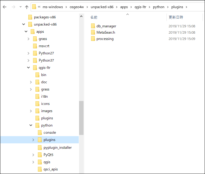 「C:\OSGeo4W\apps\Python37\lib」フォルダに「mylibs」フォルダを作成